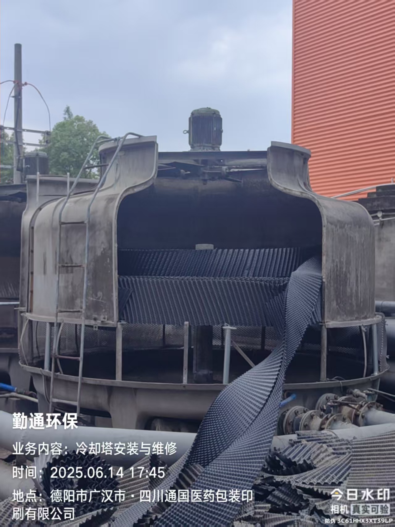 拆除冷卻塔的外殼和進(jìn)風(fēng)口、出風(fēng)口的格柵,以便更好地清理填料。